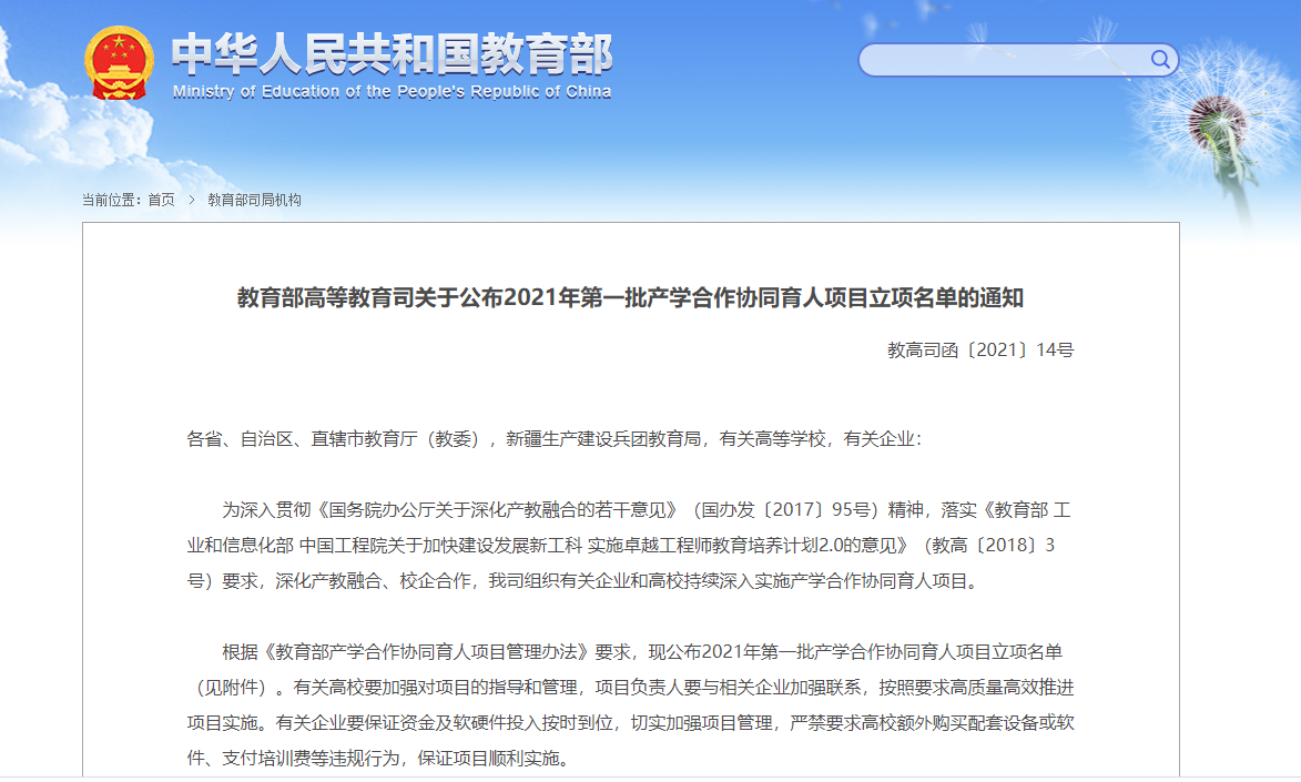 日前,教育部发布了《教育部高等教育司关于公布2021年第一批产学合作协同育人项目立项名单的通知》(教高司函〔2021〕14号),香香漫画