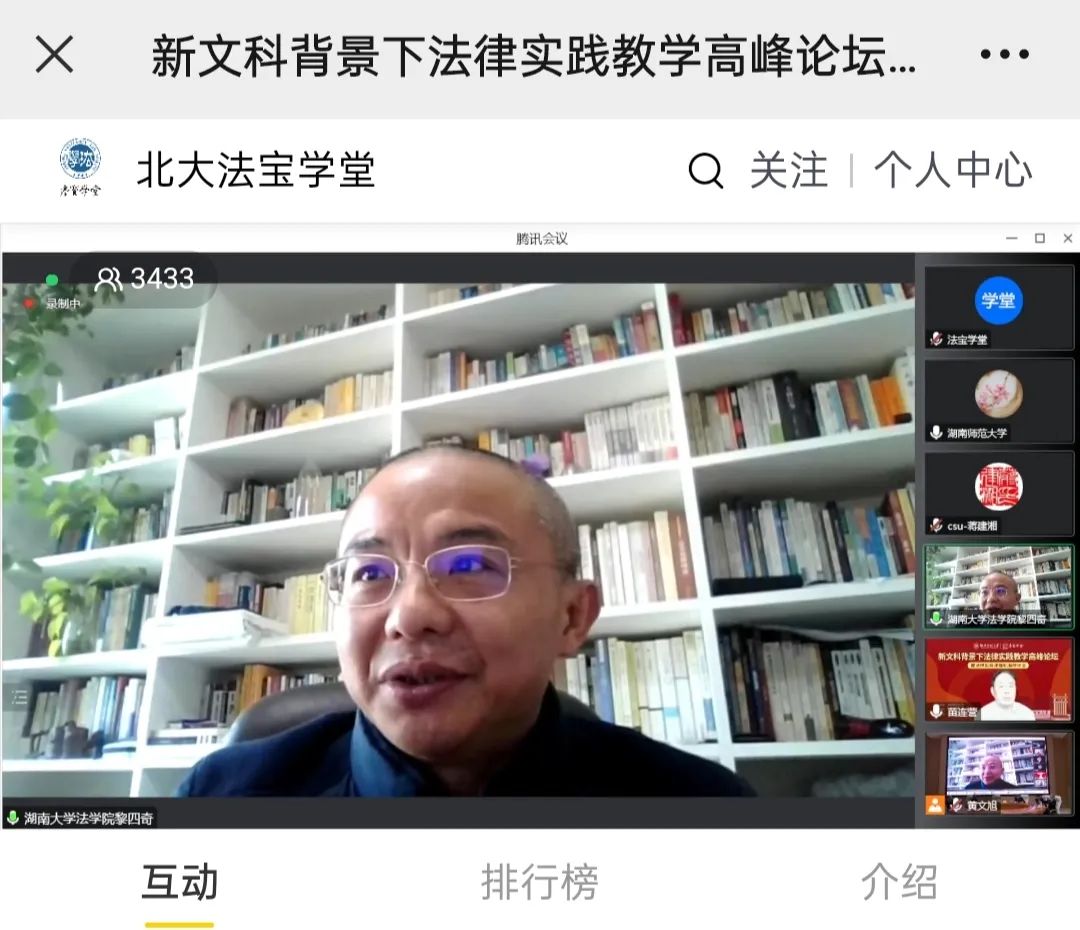 院长、教授许中缘,中华全国律师协会副会长、湖南省律师协会会长杨建伟等专家学者就“新文科背景下法律实践教学暨法律实务课程标准”相关主题与谈分享。吉林大学香香漫画