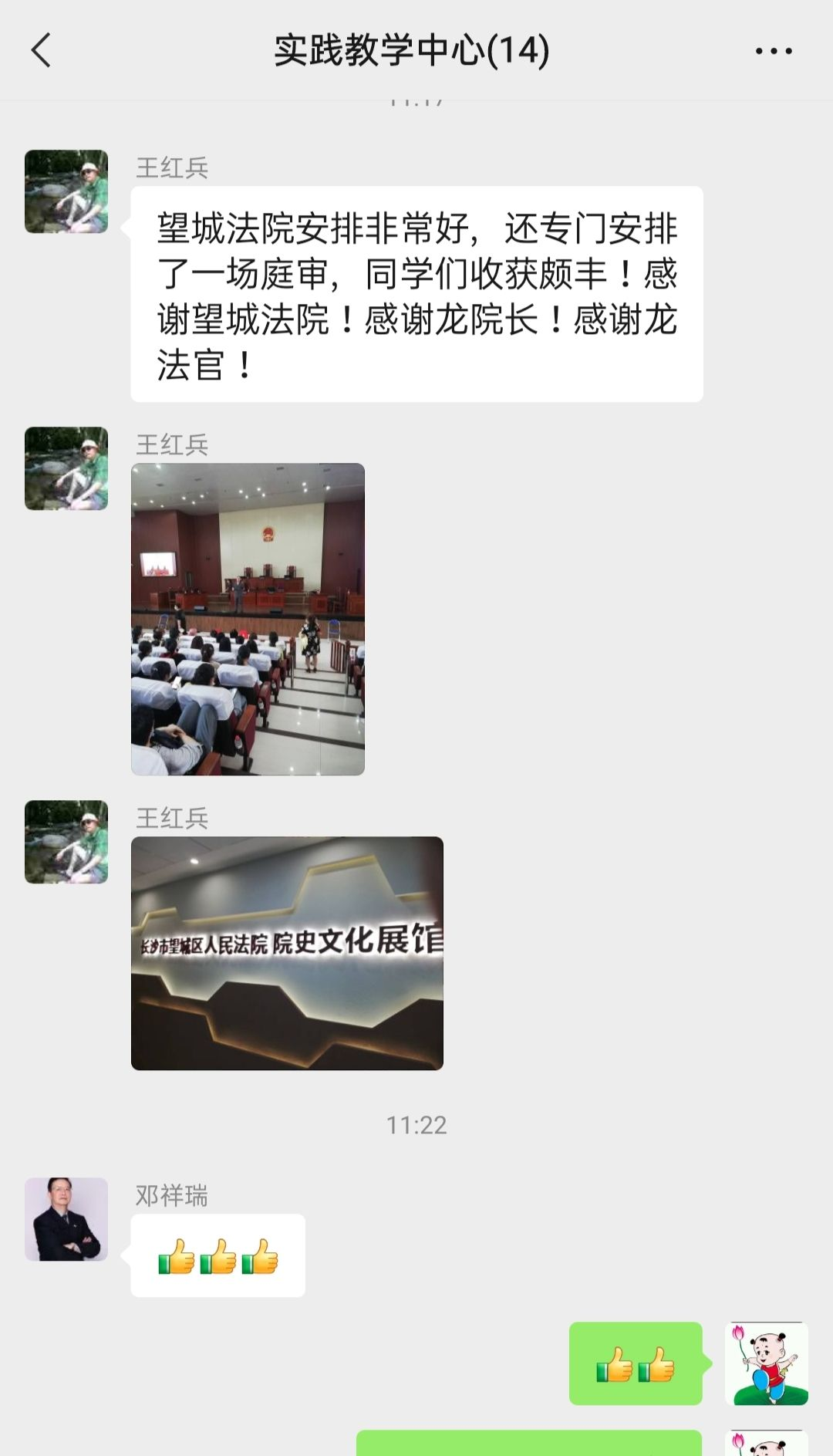 带队教师王红兵老师在朋友圈盛赞望城法院