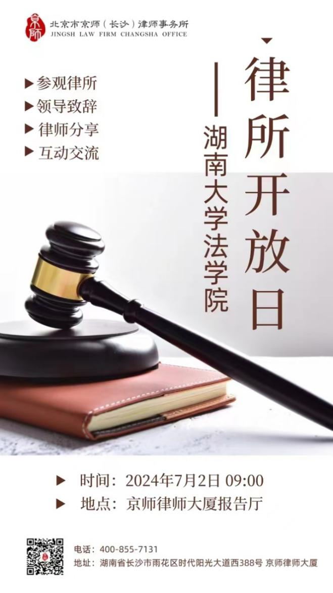 150名2023级本科生于2024年7月2日上午前往京师(长沙)律师事务所参观学习。活动由教学副院长蒋海松老师统筹策划,袁坦中老师带队,得到了北京京师(长沙)律师事务所的大力支持。