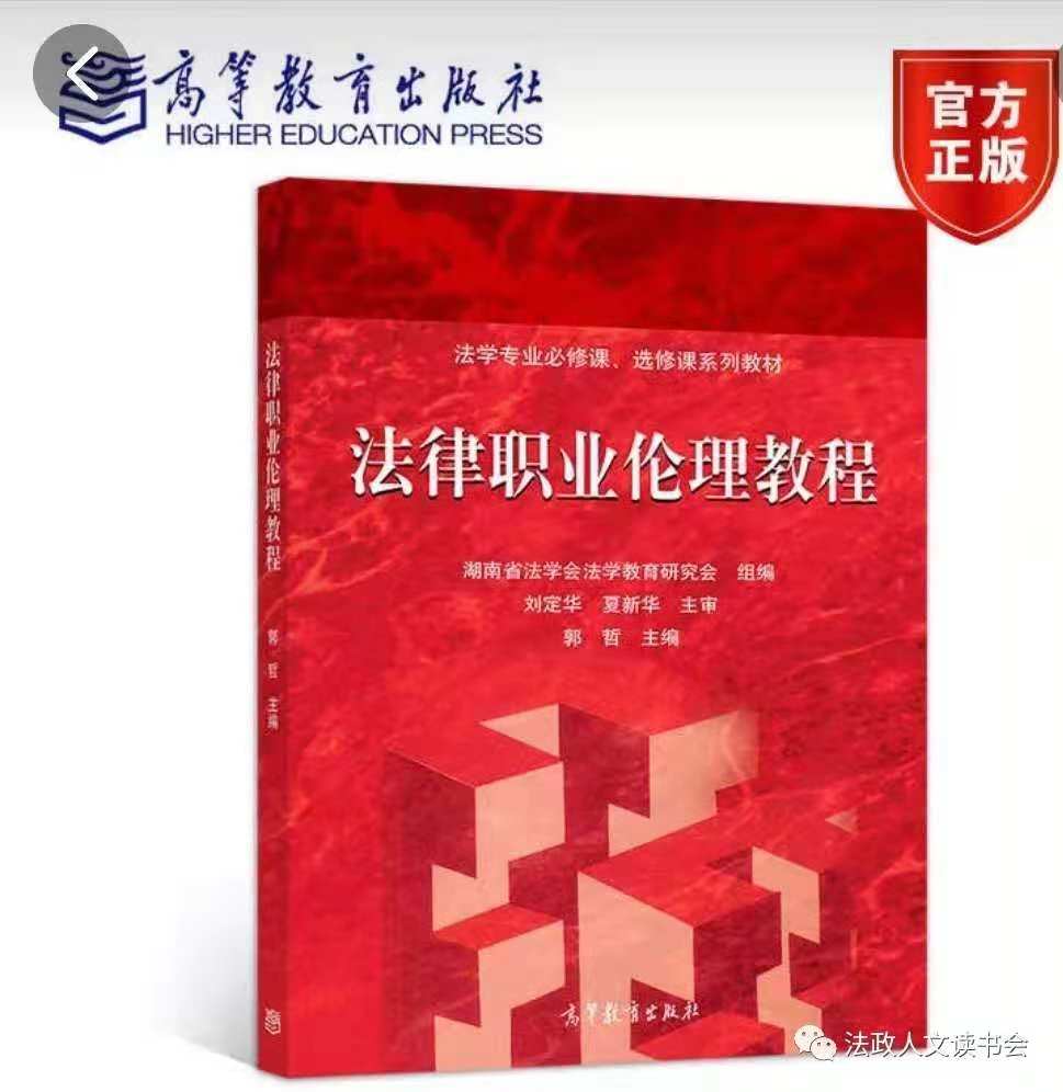 牵头,湖南省法学教育研究会组编,湖南法学教育研究会会长刘定华教授、湖南法治文化研究会会长夏新华教授主审,中国法学会副会长、学术委员会主任张文显教授作序,郭哲老师主编的《法律职业伦理教程》终于问世了!