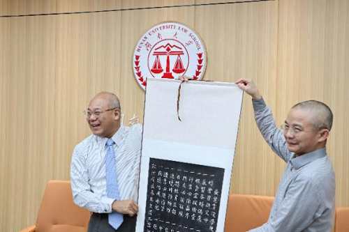 院长黎四奇、副院长湛建云、副院长喻玲、副院长王文胜、法律硕士教育中心主任宋晓庆老师、学院办公室主任雷秋玲老师等会见了郑冠宇教授一行。
