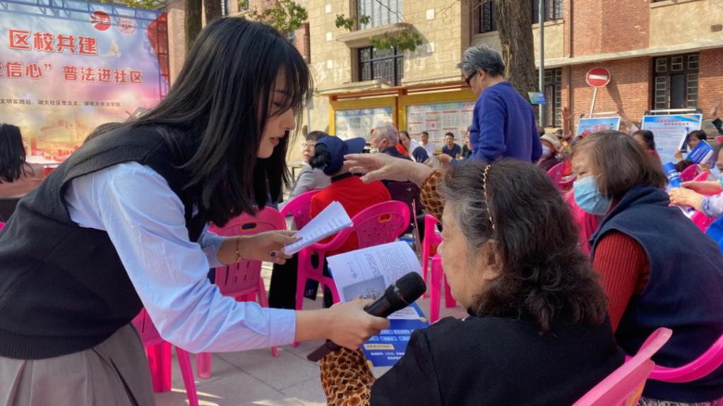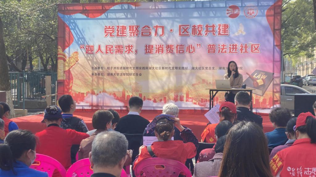 党务与学生工作办公室主任,研究生辅导员刘岳峰老师、辅导员谷雨老师,并邀请了湖大社区居民群众、党员、团员代表出席参加本次活动。