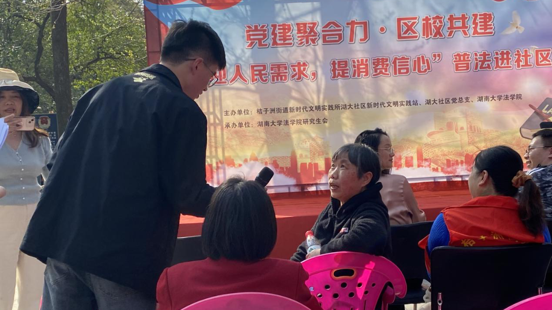 李玲博士作为受邀嘉宾参与本次活动并进行主题普法宣讲,李玲博士分别从消费者享有的权利,维权的途径及方式,常见的霸王条款、常见的维权案例等三个部分向居民群众进行了全面细致地介绍,并对活动现场群众提出的上当受骗、质量问题、售后保障等问题进行了耐心细致的解答。