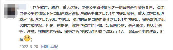 看到这则求助贴后,想起自己也曾因类似的套路受骗,所以想试着用学过的民法知识来帮助一下这名同学。于是,我便简单分析了贴中存在的法律问题,并发布了留言。