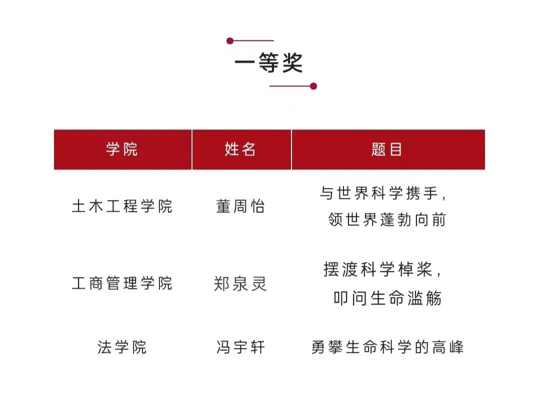冯宇轩同学在众多选手当中脱颖而出,以《勇攀生命科学的高峰》一文在仅有的三个一等奖名额中豪取一席,为学院赢得了荣誉。