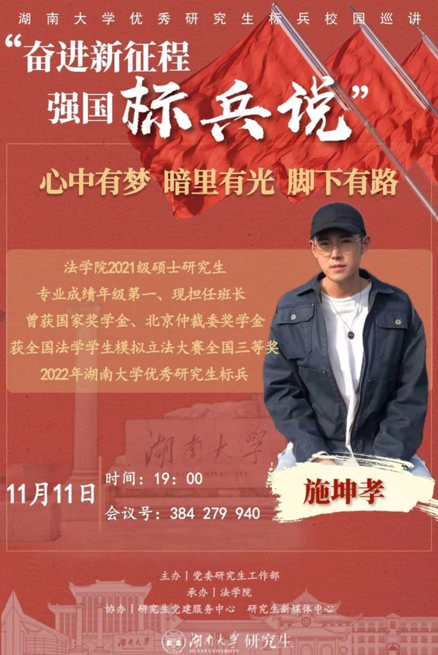 首先,在国奖经验方面,施坤孝介绍了奖学金申请条件以及可以参与的评奖评优类型,建议有意争取奖学金的同学及时撰写论文并投稿,积极报名参加法学论文写作大赛、模拟法庭比赛等法学专业竞赛。对于有意考取选调生的同学,在注重学业的同时还需做好学生工作,若获得优秀研究生干部等荣誉称号,有助于扩大自己的竞争优势。