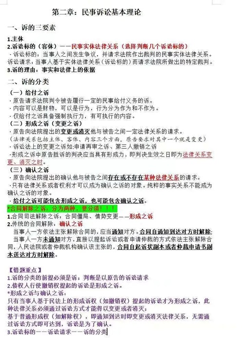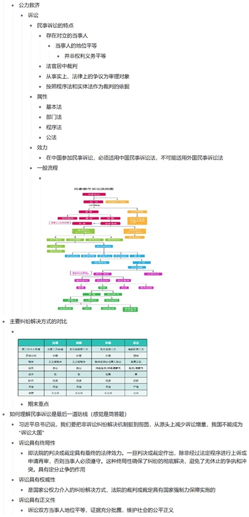 孙方怡:关于民事诉讼法的笔记,我主要从以下两个方面进行整理。一是课堂笔记,我会对笔记进行大致的归整,使其简洁凝练、通俗易懂。二是课后笔记,对于做过的练习题中的错题要及时复盘并标注在笔记后方。老师PPT上的题目很经典也很有价值,建议大家深入理解、完全掌握。对于论述题,还是要回归课堂,回归课本,在理解知识点的同时加入自己的思考。