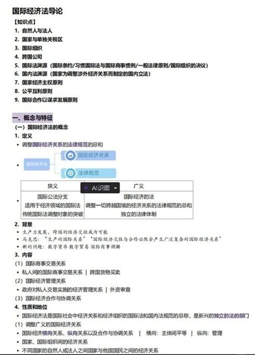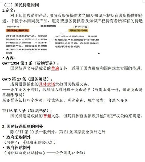 刘亮:国际经济法的难度较大,建议大家整理笔记时做到尽量详实。我的笔记主要结合了老师课堂内容、推荐的网课内容以及法考相关资料。和环境法类似,国际经济法体系也比较庞杂,入门难度较大,因此有一份属于自己的好笔记非常重要。在学习时,建议大家注重体系化理解,先明确这门课主要包括哪些法律制度,抓住老师重点讲解的部分,再逐级梳理每个部分下框架性的知识点及每个知识点包含的具体细节。同时,也要重视老师推荐的网课及相关的练习题。此外,学会自己押题也是一种行之有效的准备方式。(注:图1、图2为刘亮同学的押题内容,图3、图4为龙依文同学的笔记参考,已经龙依文同学同意。)