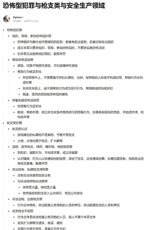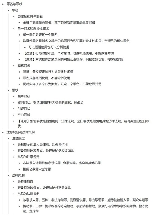 付炫泽:首先,制作刑分笔记时可以先复习刑法总论的框架知识,联系刑法总论的知识点;其次,整理笔记可以按以保护法益为标准的分类方法进行罪名的梳理,分章节构建笔记框架,清晰呈现罪名体系;最后,在整理时重点标注不同罪名之间的核心差异点,融入两阶层以及四要件等多种案例分析方式,并且可以将具体罪名的构成要件与典型案例对应结合,通过案例强化对构成要件的理解与应用。
