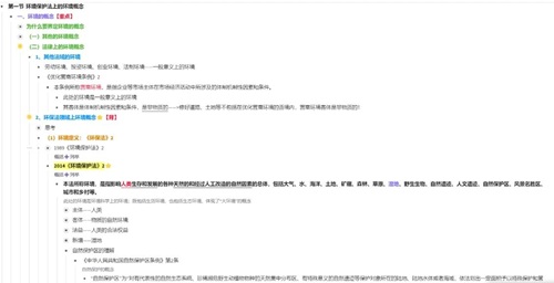 龚境美:针对环境法的笔记整理,我会直接使用幕布在课堂上以及在课后进行记录。首先,对于课堂笔记,我会选择在课前将老师的上课内容从PPT复制到幕布上,整理成完整的、有逻辑的知识体系,并仔细阅读一遍,这样在课堂听讲时,可以很好地跟上老师的思路并在相应的位置做好笔记;其次,对于课后笔记,我会先浏览一遍笔记大纲并把上课没记下来的笔记进行补充,然后对预习时建立的体系进行完善,以方便自己日后的复习理解。