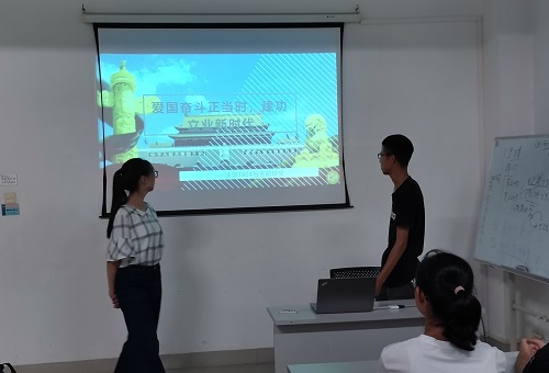班长张韩通过PPT的形式从回顾过去、立足当下、展望未来三个角度展示祖国70年来的快速发展与卓越成就,让同学们深度了解祖国的强大,激发同学们的爱国情怀与民族自豪感,同学们还集体观看爱国影片《我和我的祖国》预告片。