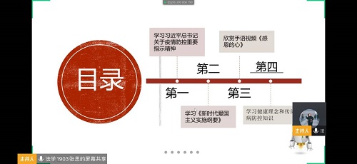 会议伊始,张思向与会同学播放了习近平总书记关于疫情防控重要指示的相关视频,让同学们进一步了解国家针对疫情做出的重大举措。通过学习《新时代爱国主义实施纲要》,同学们进一步接受爱国主义教育。班会还围绕“爱国主义”组织班级同学进行知识竞答,竞答环节一共五道题目,同学们积极回答,并在班级群内进行讨论。