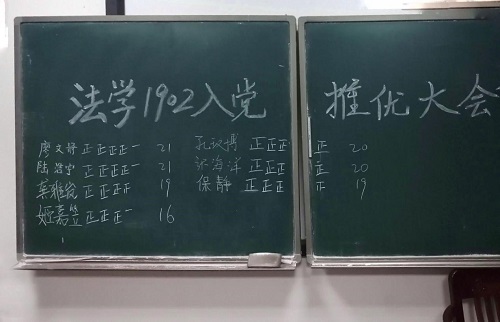 本次推优工作严格贯彻党委和团委的要求,坚持高标准、严要求,保证推优质量,坚持公开、公平、公正的原则的同时,也充分发挥了同学们的自主精神。最终,法学1902班团支部成功推选出廖文静等7位同学作为本期的入党积极分子。