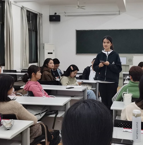 观影结束后,团支书廖敏悦上台发言,她先对观影环节进行了简单总结, “观看历史纪实电影的作用并不局限于回顾中国共产党走过的峥嵘岁月,我们应当从中受到启发,以史为鉴方能知兴替,用历史的眼光看待现实问题”。在再次点明此次团日活动的主题后,她鼓励大家分享自己的观影收获,交流彼此的心得体会。
