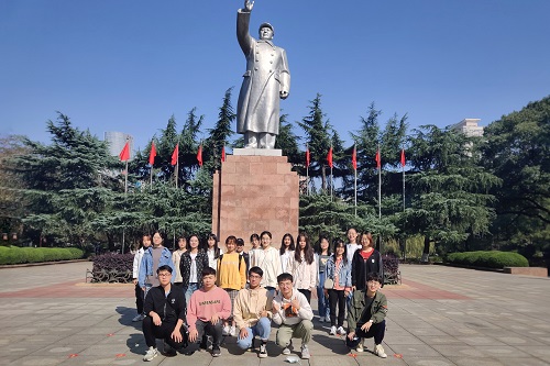 同学们刚踏入历史馆,便被丰富的展品所吸引,认真驻足欣赏。立冬后的星沙依然烈日炎炎,但同学们的兴趣和积极性却丝毫未减。从毛泽东塑像到中共湘区委员会旧址,再从艺术碑廊到历史陈列馆,同学们将自己浸润在红色文化中,深刻感受文化魅力所带来的滋养。一件件展品背后凝聚的是共产党人坚定的信念和无私的奋斗。先辈们高尚的家国情怀和敢为人先的精神已然默默渗透到每一位同学心中。在同学们充分参观历史馆后,班委号召同学们集合拍照,以留作本次活动的纪念。