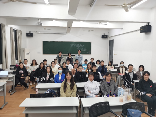 303教室召开“学习交流”主题班会,喻涛滔学长、程度佳学姐、金博涵学长以及法学2002班全体同学参与此次班会。