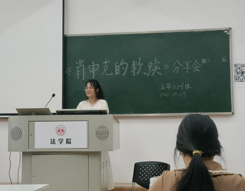 此项活动目的在于提高2203班同学的鉴赏能力和法律思维素养。同学们站在法律的角度欣赏了这部电影。同学们了解了假释、监狱、洗钱罪、无期徒刑等法律词汇。在学习委员杨宇冰同学的主持之下,读书会分为观点分享和自由讨论两个环节。