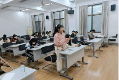 本次班会共分为五个环节。第一环节:以声动人。同学们赏析了“喜迎二十大,奋进新征程”短视频后,对本次班会有了初步感知与了解。第二环节:笔纸绘梦。班委为同学们发放活页纸,同学们在纸上写下自己大学四年在学习和生活方面的愿望。第三环节:游戏环节。击鼓传花,被选中的同学为大家分享自己的愿望。