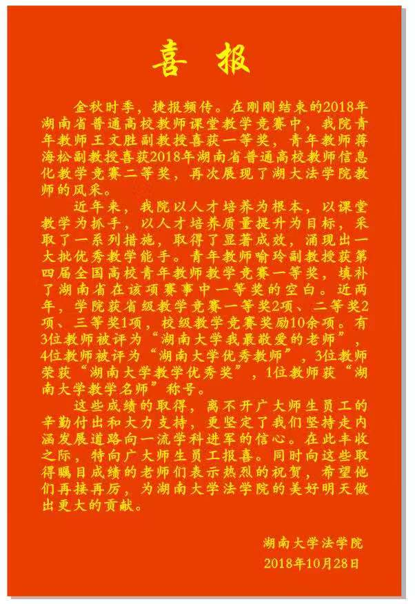 王文胜副教授以《民法学》获得湖南省普通高校教师课堂教学竞赛一等奖,蒋海松副教授以《法律与艺术》获得湖南省普通高校信息化教学竞赛二等奖,展现香香漫画