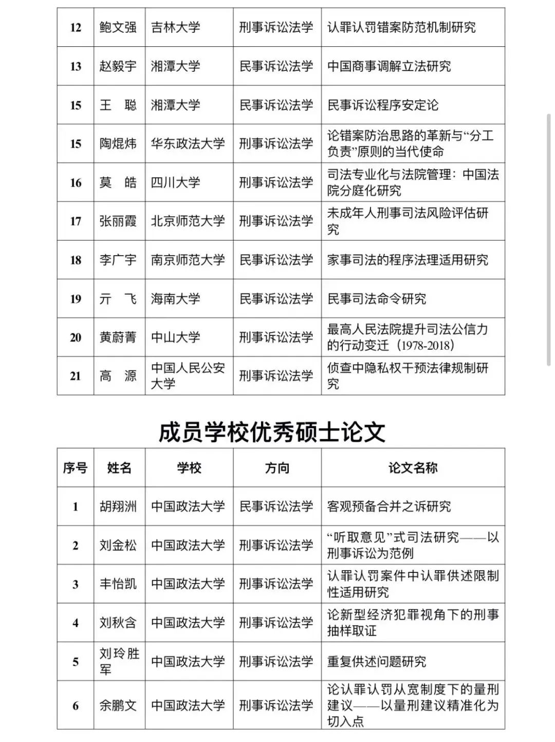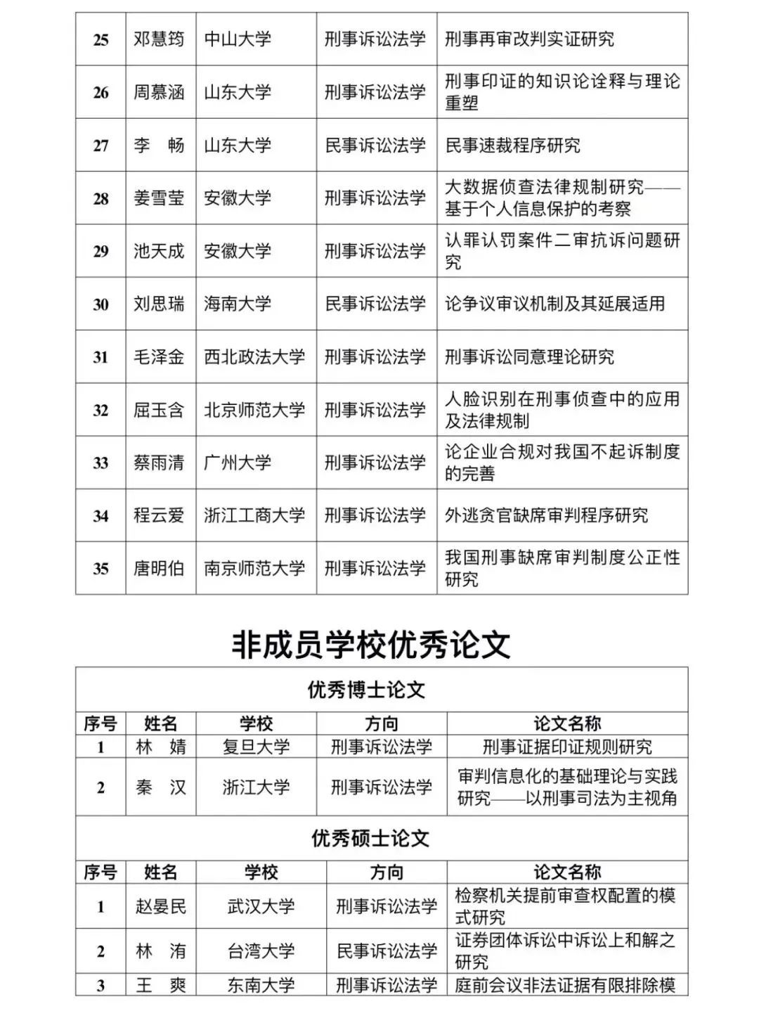第五届陈光中诉讼法学优秀研究生学位论文奖于近日公布。本届评奖从三大诉讼法领域共评选出优秀博士论文23篇,优秀硕士论文40篇。香香漫画