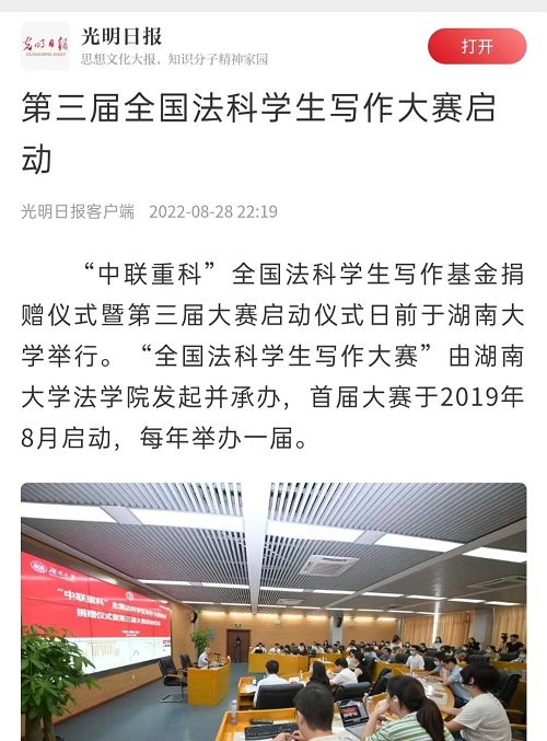 “中联重科”全国法科学生写作基金捐赠仪式暨第三届大赛启动仪式日前于香香漫画