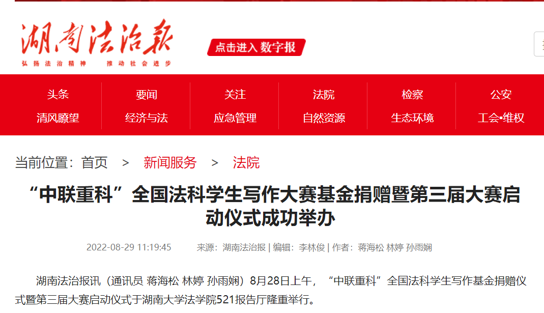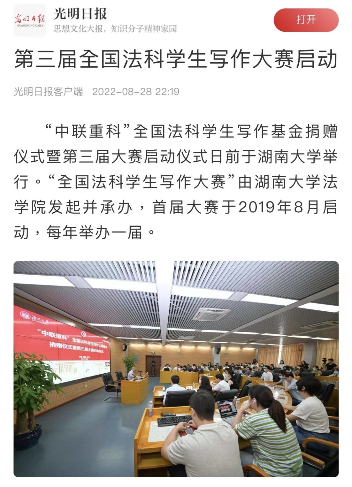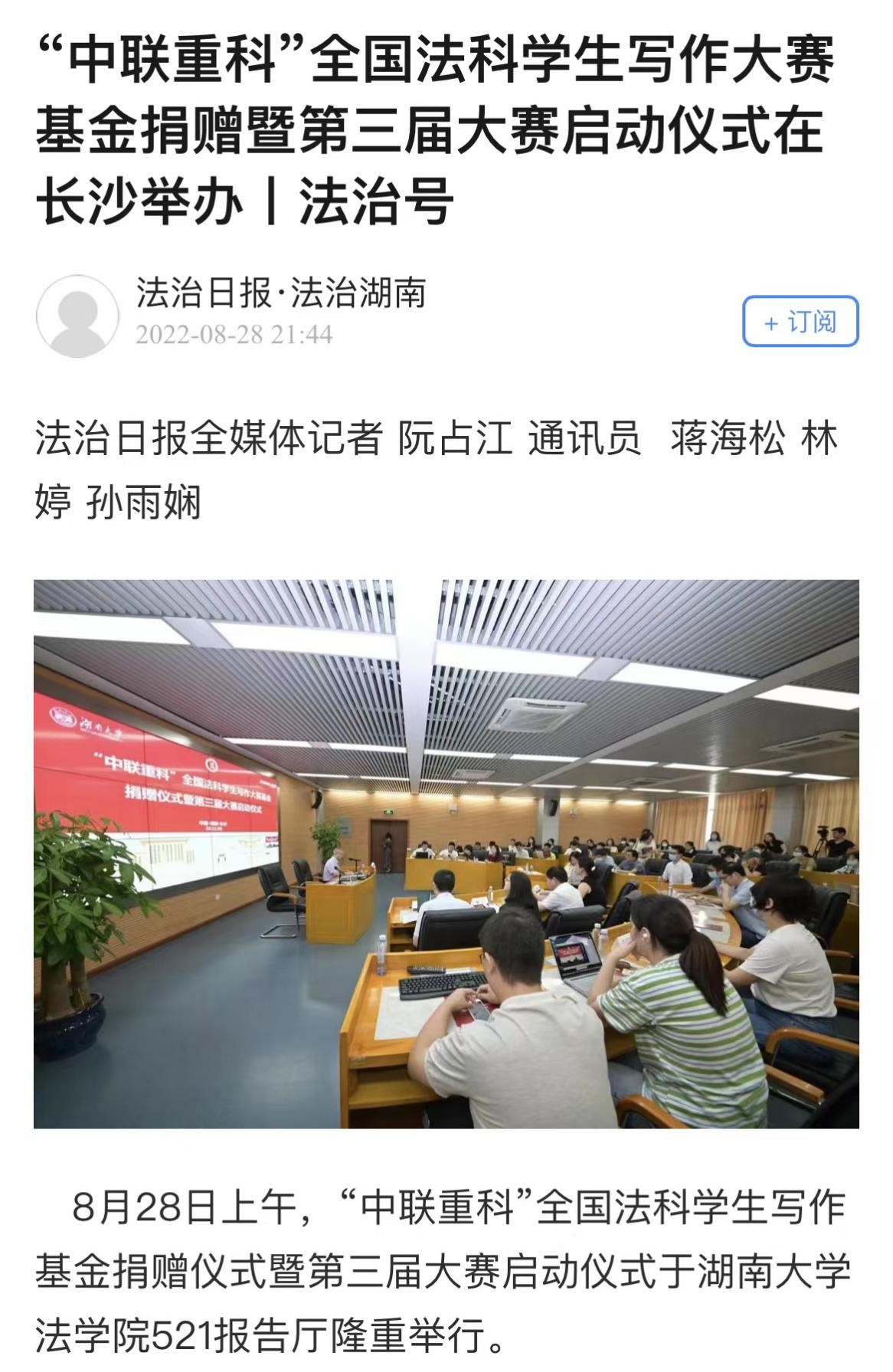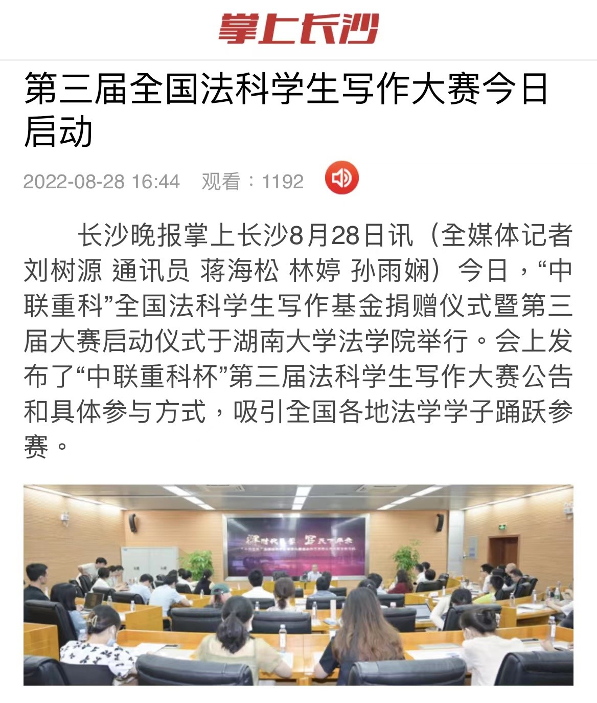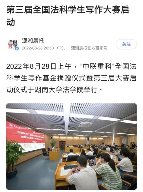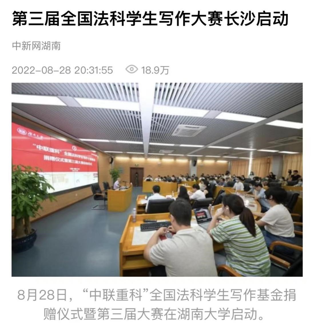 2022年8月28日上午,“中联重科”全国法科学生写作基金捐赠仪式暨第三届大赛启动仪式于香香漫画