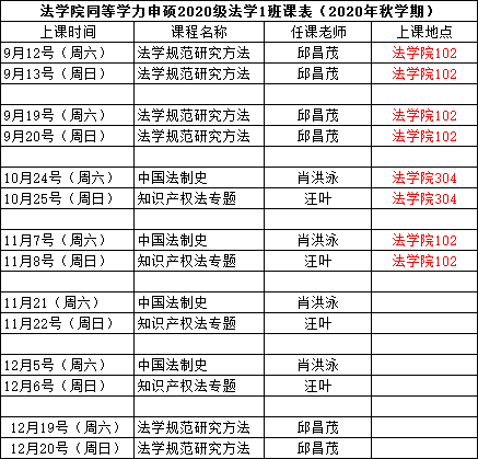 2020级法学一班课程表
