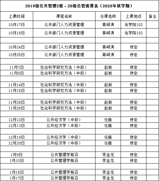 公共管理(2019级、2020级课程表)