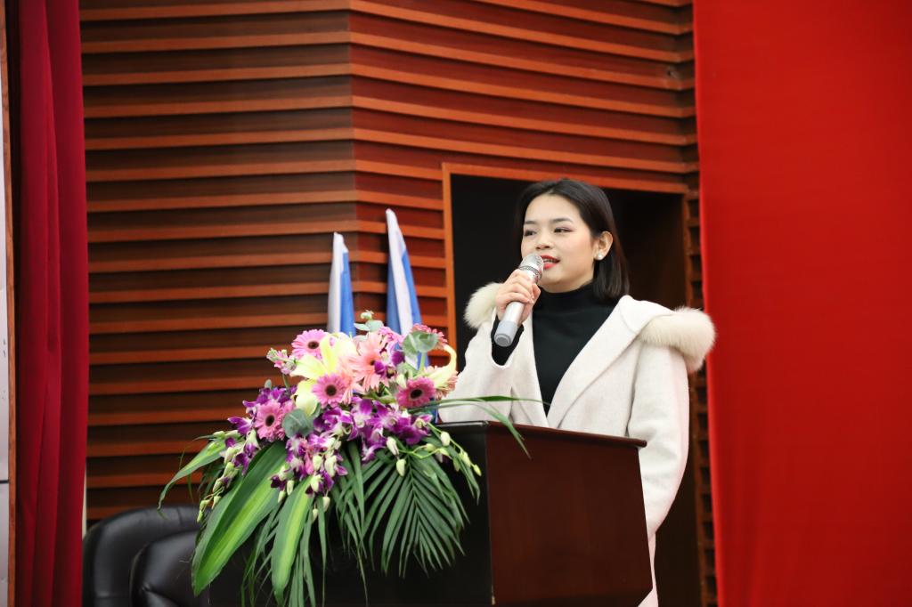 第五篇章由申硕办王蕾老师作为班主任代表发言。她主要从两方面对同学提出要求与注意事项:一是课程修读阶段的考勤与考试占比。作为在职同学,各位班主任深知兼顾家庭、工作与学习的不易,因此仅希望同学们能够在生活间隙保持一定的上课频率,从而达到较好的学习效果,不枉费自己的时间与精力成本;二是课程修读与教务查询、资料下载等贯穿整个学习过程的事项办理。学校为方便学生自主查询与核对,已将上述所有功能均集合至申硕办公众号中,学生可方便的进行日常查看。最后她祝福各位抱持着人文关怀与家国情怀,向法而行,不负韶华,虽然始于寒冬,但必收获春光。