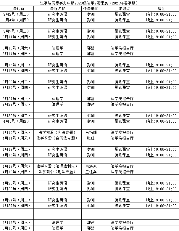2021年春学期课程安排表(3月1日更新)