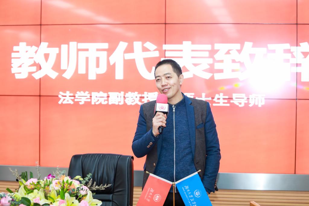 同时,他对新生们提了三点要求:一是要服从同等学力办公室老师们的管理和要求。第二,希望同学们珍惜在大学校园里的美好时光。同学之间的这种情谊、这种缘分是一辈子永远也用不尽的一种财富,也是一辈子中非常珍贵的一种情谊,所以学校的时候,既要读好书,又要能够交好朋友。第三点就是希望同学们能够做一个有湖大品格的法律人。