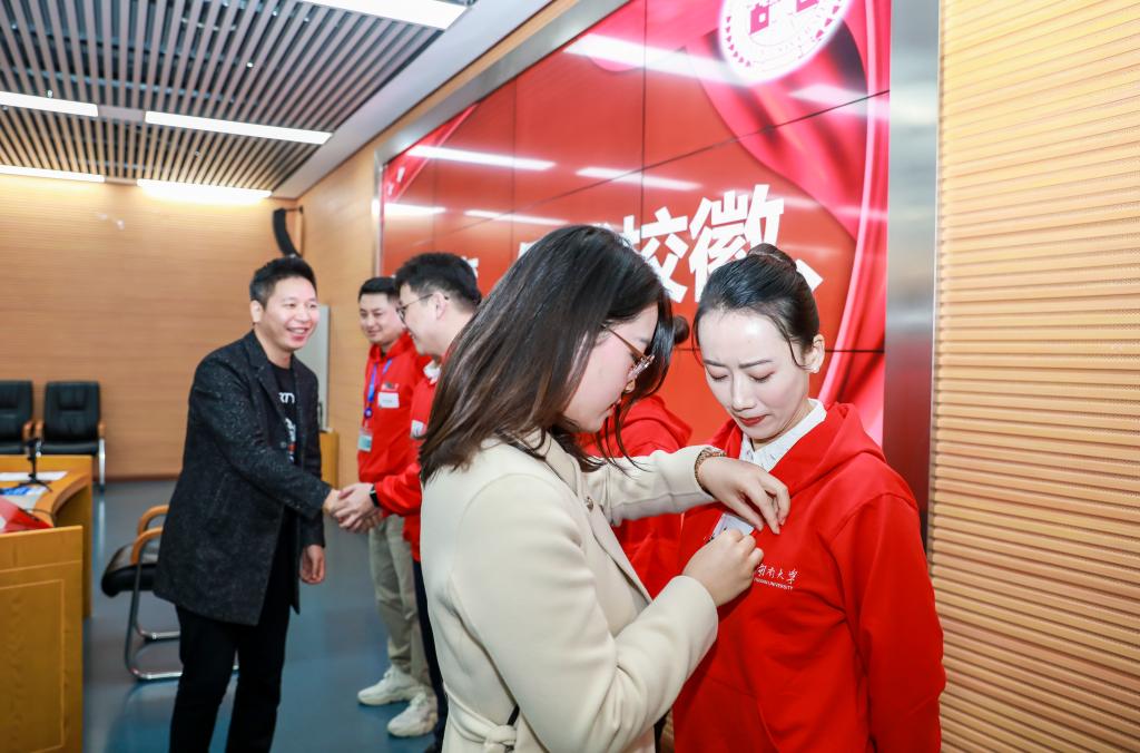 的校徽,代表着光荣的校徽在胸膛前熠熠生辉。
