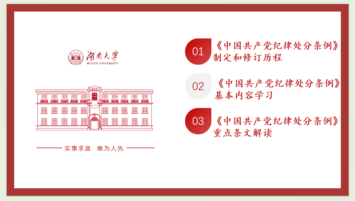 本次会议主要采取领学解读的方式,由支委同志从《条例》的制定和修订历程、基本内容学习和重点条文解读三个方面带领本支部其他同志进行深入的学习。本次修订被习近平总书记高度评价为“十八大以来制度创新的又一成果”,是以习近平同志为核心的党中央坚定推进全面从严治党、依规治党、“纪法分开”思想的学习,是对“纪严于法、纪在法前”要求的贯彻落实,充分体现了我党进行自我革命的决心,以及全面从严治党的信心,为新征程上党的建设提供了坚强的纪律保障。