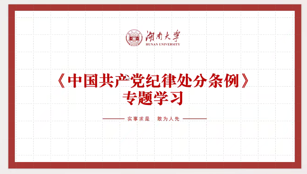 会议要求,作为法学生的全体党员更应认真学习领会本《条例》,在工作、学习、生活中均应将本《条例》中的要求内化于心、外化于行,把严守纪律融入日常、化为习惯,深入贯彻落实《条例》的要求,强化自我约束,增强党性。对于即将步入各行各业的应届生更是作出了警示,要在工作岗位中严守底线,不能跨越违法违纪的边界线,坚持奋发有为,不断为法学事业做出贡献。