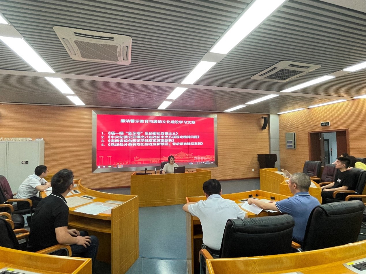 会上,老师们集中学习了《晒一晒“象牙塔”里的那些官僚主义》《海南省琼台师范学院腐败窝案剖析》《中央纪委公开曝光八起违反中央八项规定精神问题》《党纪处分条例划出的这些新禁区》廉洁警示经典案例,以典型违纪违法案例为鉴,深刻阐释新时代廉洁文化建设的重大意义,正反对比,震撼心灵、发人深省。