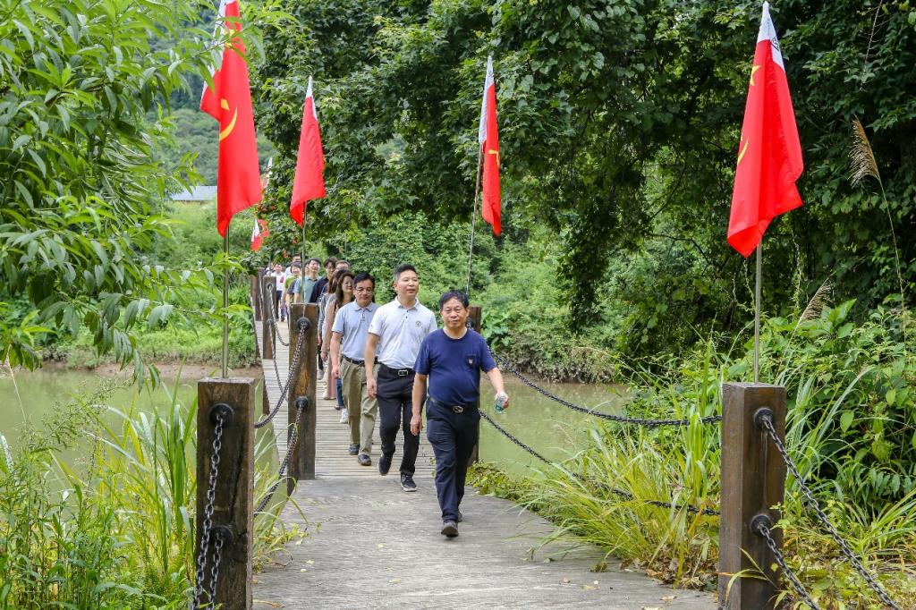 在于都,中心组(扩大)一行参观了中央红军长征出发纪念馆、长征第一渡口、中央红军长征出发纪念碑,重走了祁禄山红军长征小道,了解当年红军长征集结于都的历史背景以及于都人民支持中央红军长征夜渡贡江的巨大牺牲和付出。