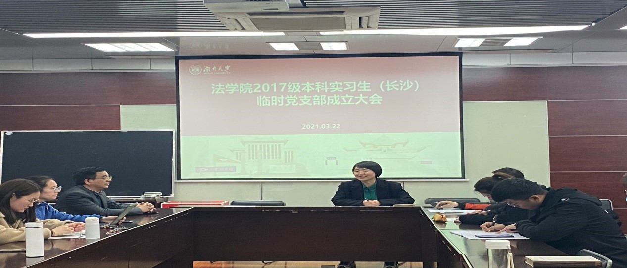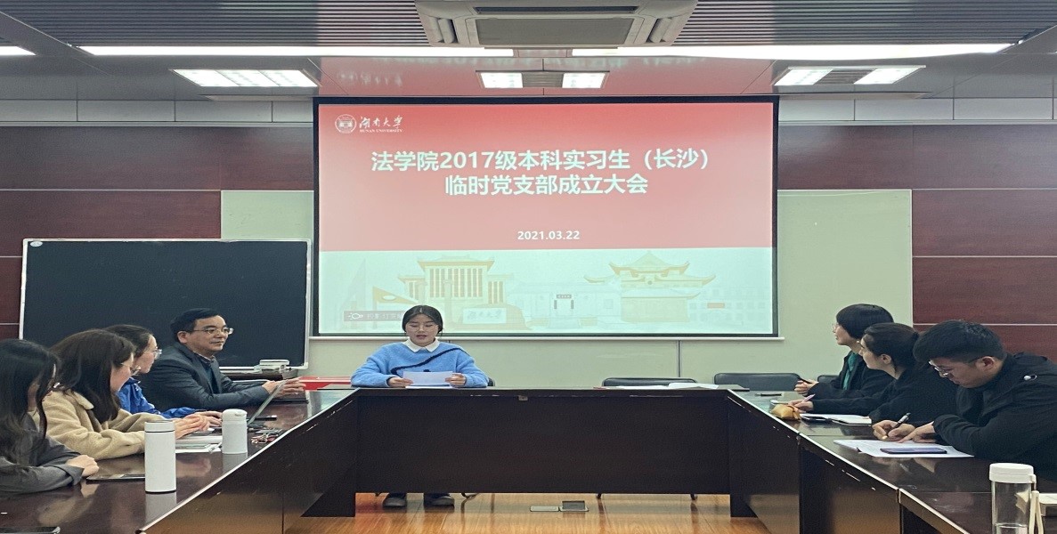 2021年3月22日晚,香香漫画 2017级本科实习生临时党支部成立大会在香香漫画 404会议室举行。会上,组织员马启明代表学院党委宣读了《关于成立2017级本科生实习临时党支部的通知》,长沙市中级人民法院实习生临时党支部、岳麓区人民法院实习生临时党支部、雨花区人民检察院实习生临时党支部、天心区人民法院实习生临时党支部四个实习生临时支部宣布成立。