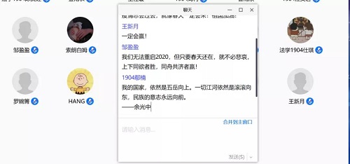 法学1805班团支部本次主题团日活动充分发挥出团支部带动作用,促使同学们优化学习观念,改进学习方法,加强了沟通交流,营造良好的学习氛围,提高在线学习效果,为线上学习提供了坚实的保障。青春共战疫,停课不停学。