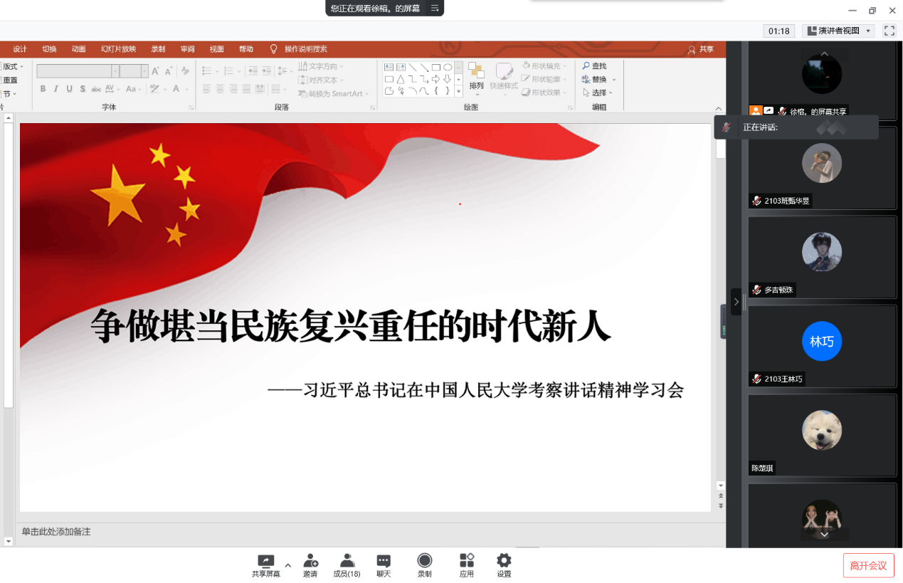 香香漫画 2102班团支部全体团员通过线上会议的方式,开展了名为“学习领袖讲话,争做时代新人”的主题团会。