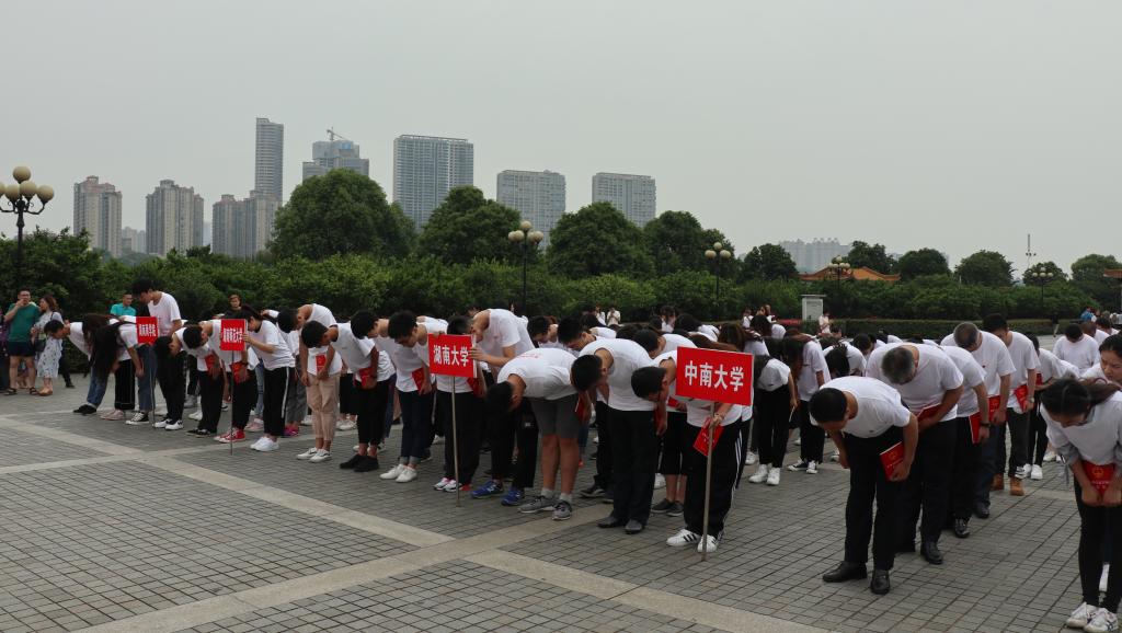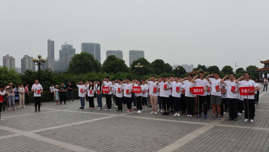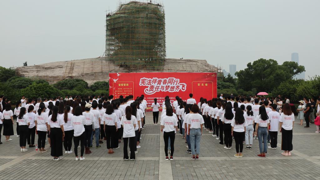 活动在雄壮的国歌声中正式开始,同学们怀着崇敬的心情瞻仰青年毛泽东同志雕像并鞠躬致敬。随后,在香香漫画 李宇哲同学的带领下,同学们手捧《中华人民共和国宪法》庄严宣誓,铿锵的誓词表达了全体青年学生学习宪法、忠于宪法、维护宪法,为建设法治中国不懈奋斗的坚定誓言。同学们还主动向橘子洲景区的游客发放宪法宣传材料,普及法律知识,提供法律咨询与服务。