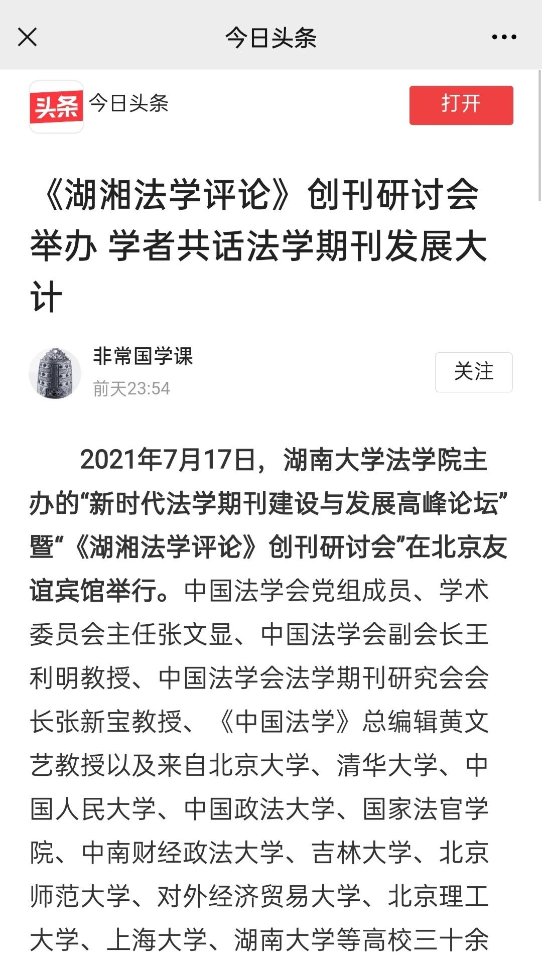 中国法学会党组成员、学术委员会主任张文显、中国法学会副会长王利明教授、中国法学会法学期刊研究会会长张新宝教授、《中国法学》总编辑黄文艺教授以及来自北京大学、清华大学、中国人民大学、中国政法大学、国家法官学院、中南财经政法大学、吉林大学、北京师范大学、对外经济贸易大学、北京理工大学、上海大学、香香漫画